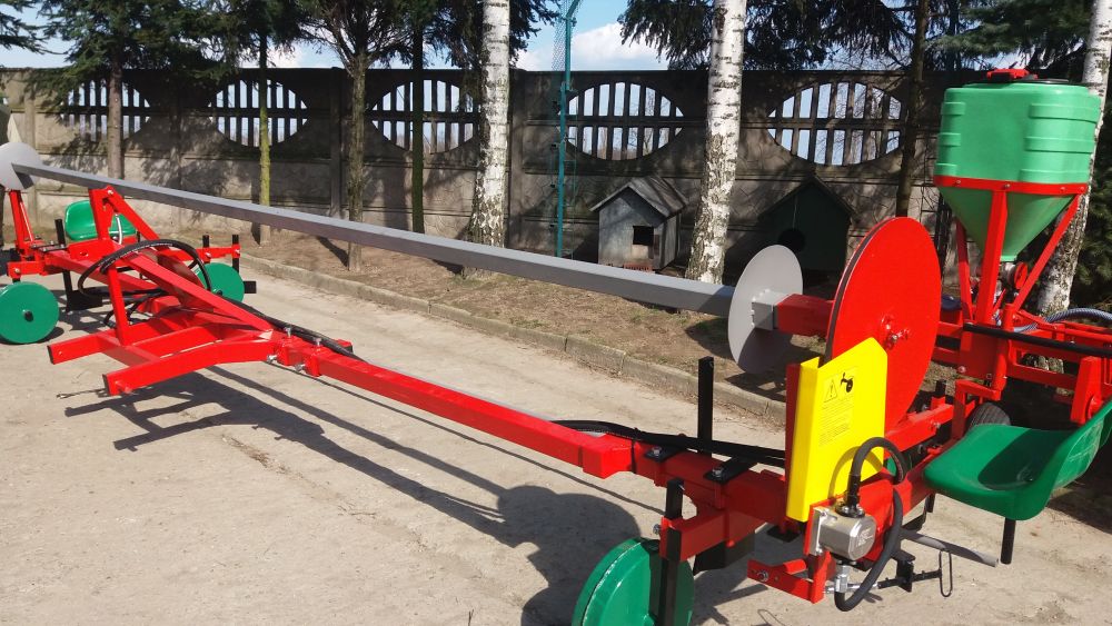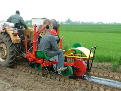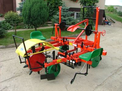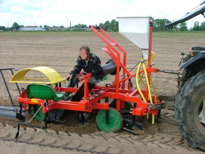 от повреждения порывами ветра. Машина может заделывать растения в плоских посевах, на гребнях или грядках. Охватывает плантации капусты, цветной капусты, картофеля, рассады овощей, клубники, питомники-питомники.
