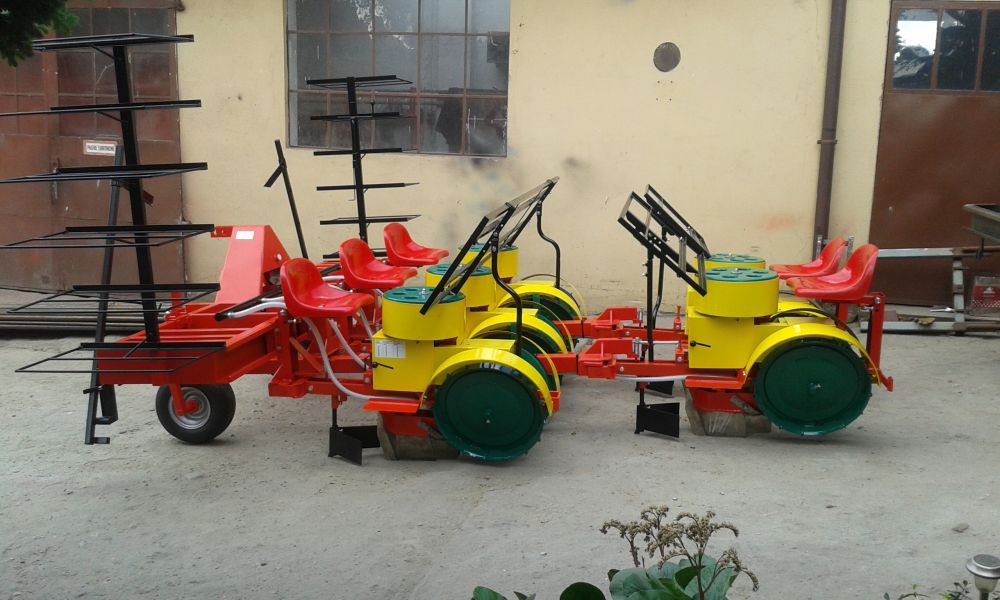 • 2-, 3-, 4- и 5-рядные карусельные сажалки предназначены для полуавтоматической посадки растений из многоячеечных лотков, взаимозаменяемо размещаемых на стеллажах сеялки. Сеялки