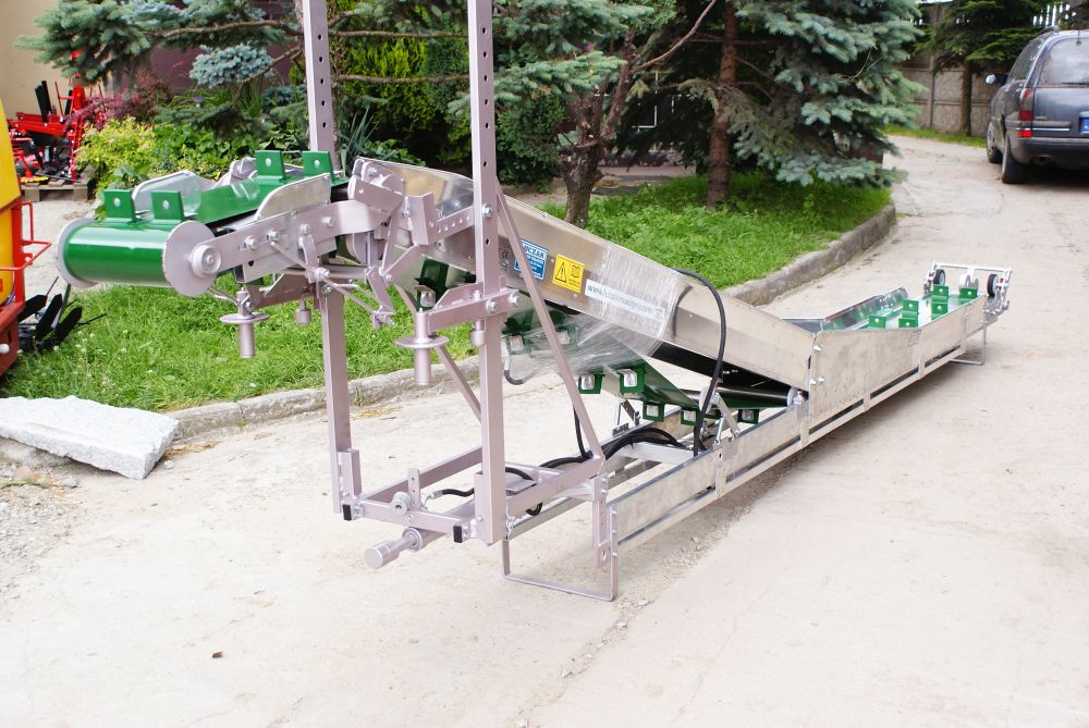 • Универсальный транспортер нового поколения для погрузки овощей, соединенный с сельскохозяйственными платформами или прицепами, может быть установлен на передней части трактора.