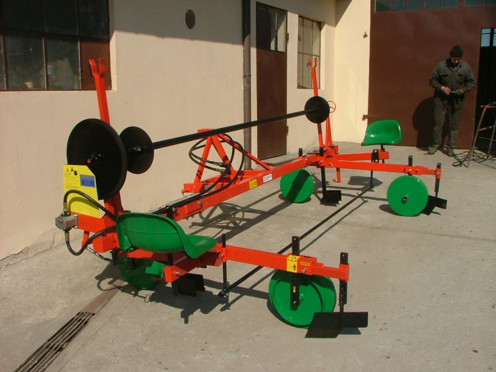 от повреждения порывами ветра. Машина может заделывать растения в плоских посевах, на гребнях или грядках. Охватывает плантации капусты, цветной капусты, картофеля, рассады овощей, клубники, питомники-питомники.