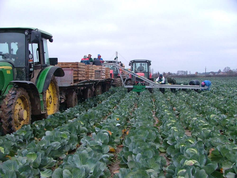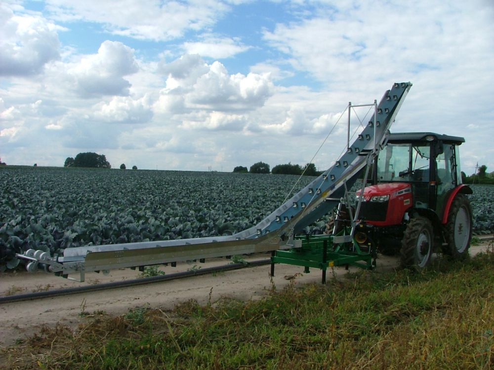 • Быстрая уборка овощей (100-120 паллет кочанной капусты). С транспортера сотрудники собирают овощи и укладывают их в ящики для поддонов или садовые ящики. Транспортер может автоматически