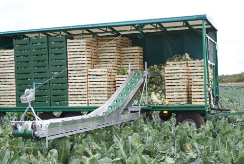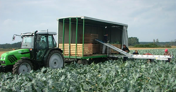 загружать прицеп капустой, цветной капустой, брокколи навалом без ручного штабелирования.